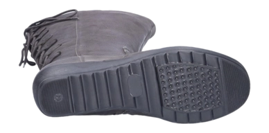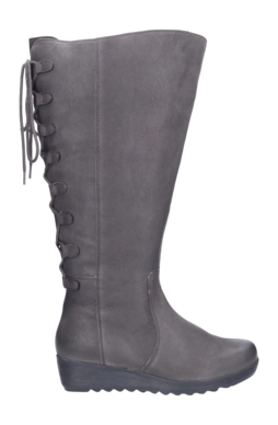 Der stylische Akins Stiefel der Marke JJ Footwear hat einen dezenten Keilabsatz und ist aus Leder gefertigt. Der Stiefel hat eine Schafthöhe von 39 cm und hat ein herausnehmbares Fußbett. Der Stiefel hat einen trendigen Look und ist angenehm unter einem Kleid zu tragen. Der Stiefel hat eine schöne Schnürung auf der Rückseite, mit der Sie die Passform anpassen können. Der Akins Damenstiefel eignet sich für Damen mit einer Wadenweite von XXL und hat eine Fußweite der Klasse H.