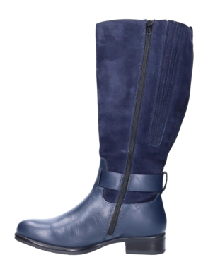 Der Bayston Damenstiefel der bekannten niederländischen Marke JJ Footwear ist aus hochwertigem Leder gefertigt. Der Stiefel hat einen glatten Lederfuß und einen Nubukschaft. Der Riemen verleiht dem Stiefel einen stilvollen Look. Die Stiefel sind von hoher Qualität und haben neben einer Schuhgröße auch eine Wadengröße, wodurch der Schaft perfekt sitzt.