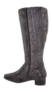 Diese Stiefel aus hochwertigem italienischen Leder sind sowohl lässig, als auch schick und elegant. Die Wadenweite ist in verschiedenen Größen erhältlich und kann ideal passend zum jeweiligen Bein ausgesucht werden. Der Schuh sitzt wie angegossen und verspricht zudem einen festen Halt. Der sichere Halt wird von der Gummisohle unterstützt, die besonders auf rutschigen und nasse Oberflächen von Vorteil ist. Ein eleganter Schuh, der zu jedem Outfit passt und mit seiner schicken Schlangenoptik auch noch ein echter Hingucker ist.