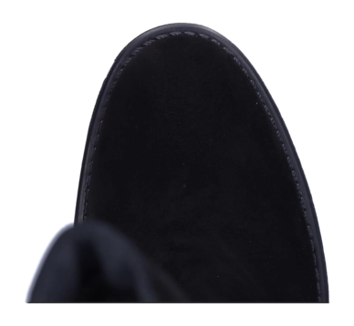 Dieser Stiefel mit der Bezeichnung Sydney stammt von der Marke JJ Footwear. Der Stiefel hat eine schwarze Farbe und einen mittel-hohen Absatz, mit dem Sie sich bequem bewegen können. Der Stiefel hat eine Wadengröße von M und ein schlichtes Design. Die Details wie der Riemen, die Schnallen und die Nähte verleihen dem Stiefel dennoch ein feminines Aussehen. Die Rückseite ist dezent mit einem elastischen Material ausgestattet, was für noch mehr Tragekomfort sorgt. Der Sydney Stiefel wurde von Reitstiefeln inspiriert und hat ein klassisches JJ Footwear Design.